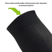 The distinctive extra wide 4cm cuff design of TXG Flight Socks prevents skin abrasion and pressure points, ensuring a snug yet comfortable fit. This thoughtful design feature makes it easy to wear the socks for extended periods on long flights without any irritation. The absence of pressure points is essential for maintaining blood flow, reinforcing the benefits of these specially designed socks. -